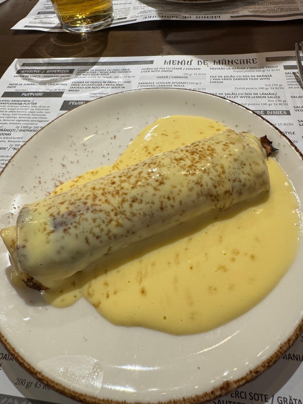 We each had a delicious crepe with cottage cheese, raisins & vanilla sauce.