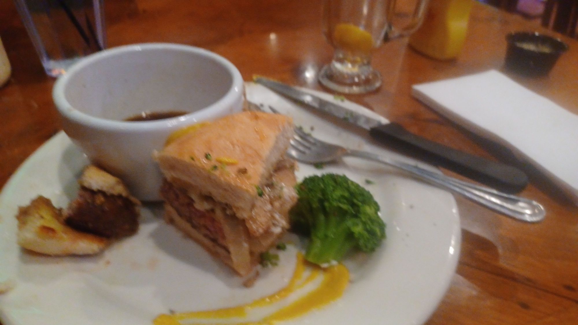 Got them to sub steamed broccoli for the kettle chips and cole slaw. The au jus was so good. Burger done perfect medium rare with mushrooms carmelized onions and swiss cheese.
