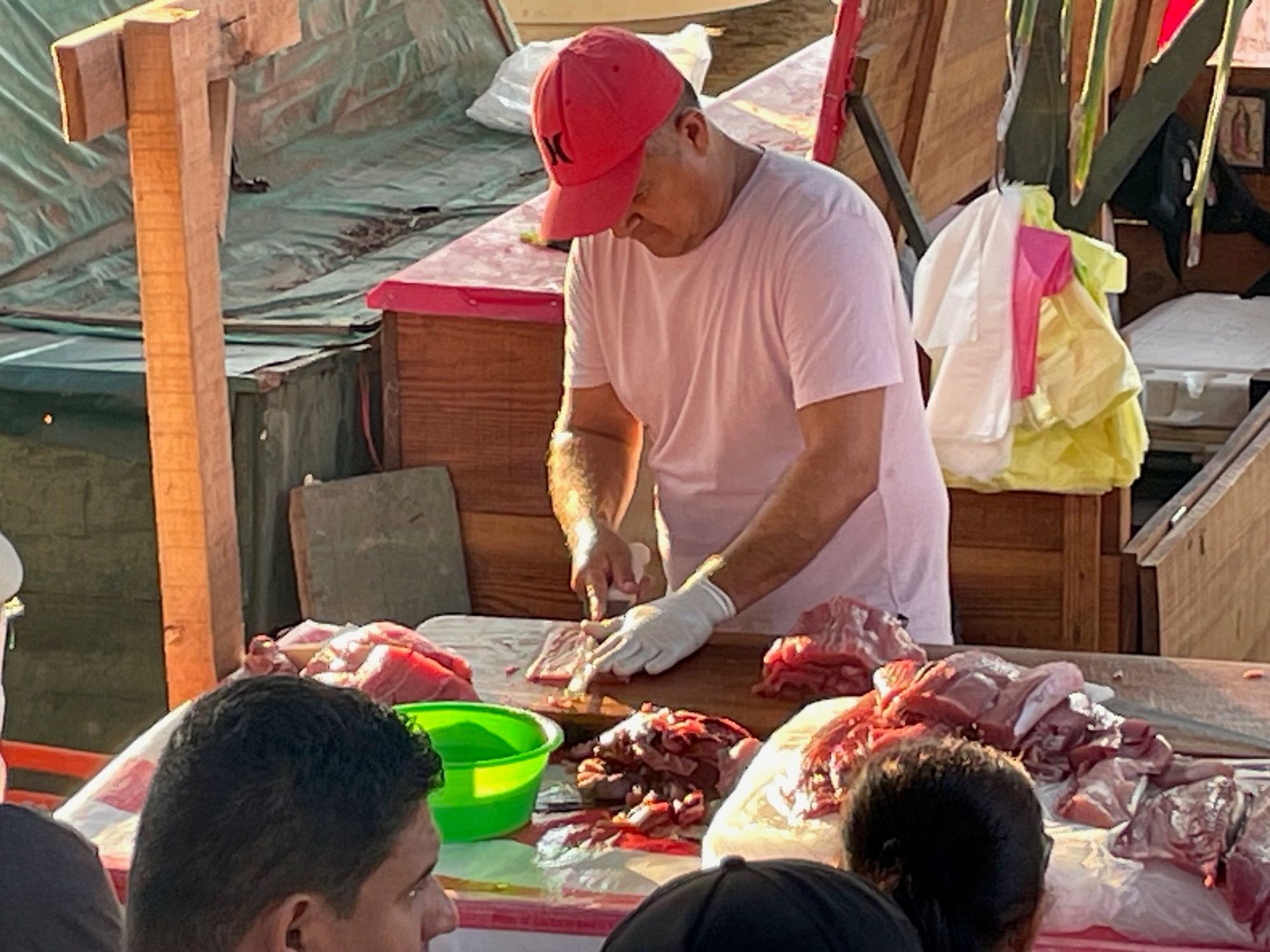 I've bought my fish, now this guy will fillet it for me in about a hot minute.
