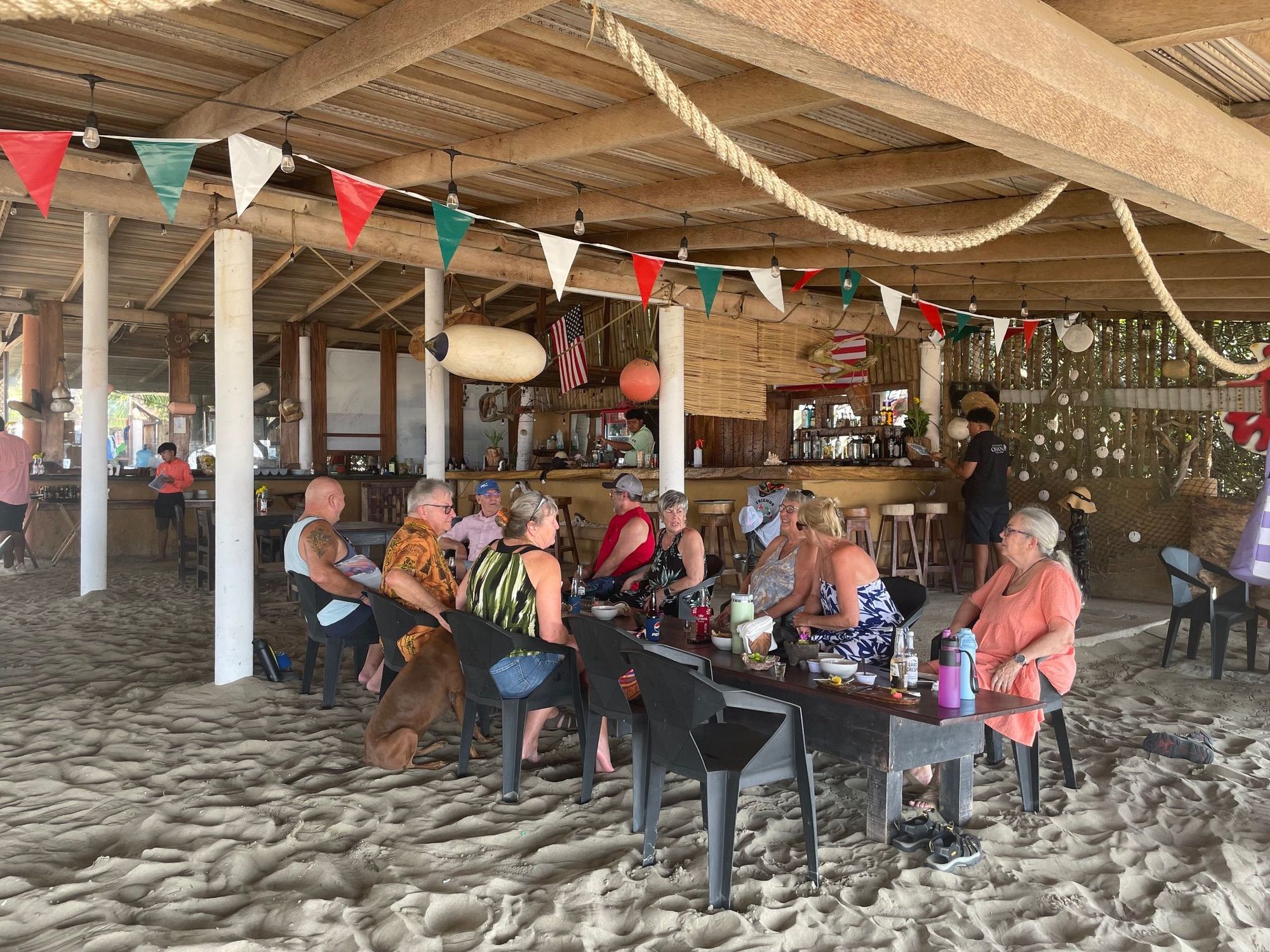 Jorge sets us up with a bit table, and plies us with tequila and wonderful seafood. Our friend, John, always orders this giant board of sashimi, coconut shrimp, octupus and oysters. It's a feast