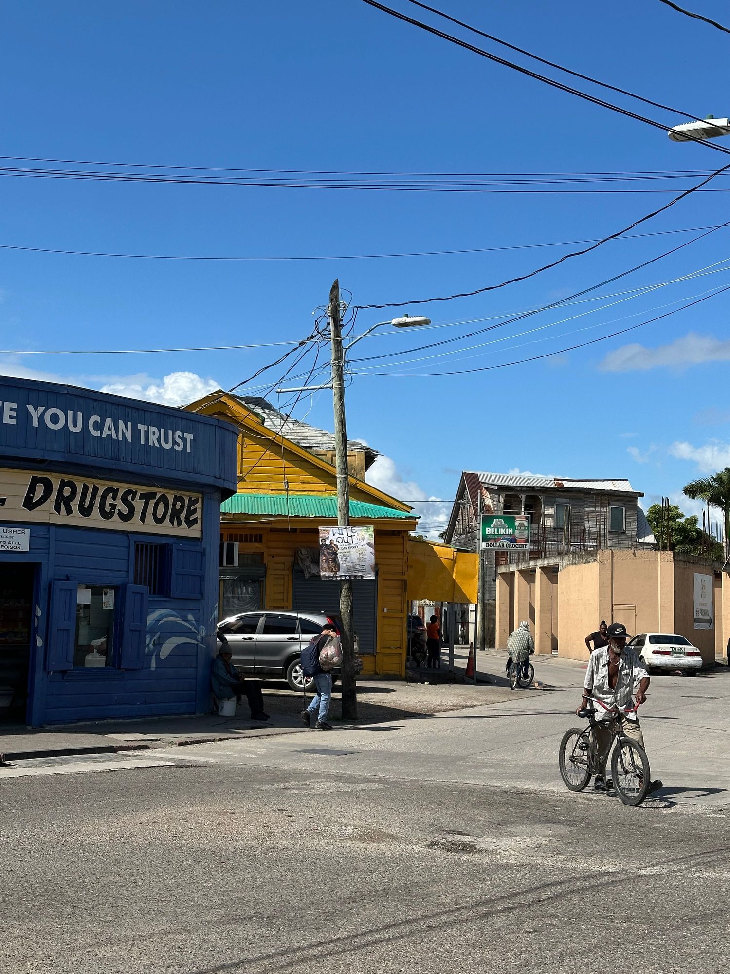 Typical scene near the docks; not many cars, many people walking or on bikes. I stopped into a local supermarket but could not find anyone selling fresh fruit....
