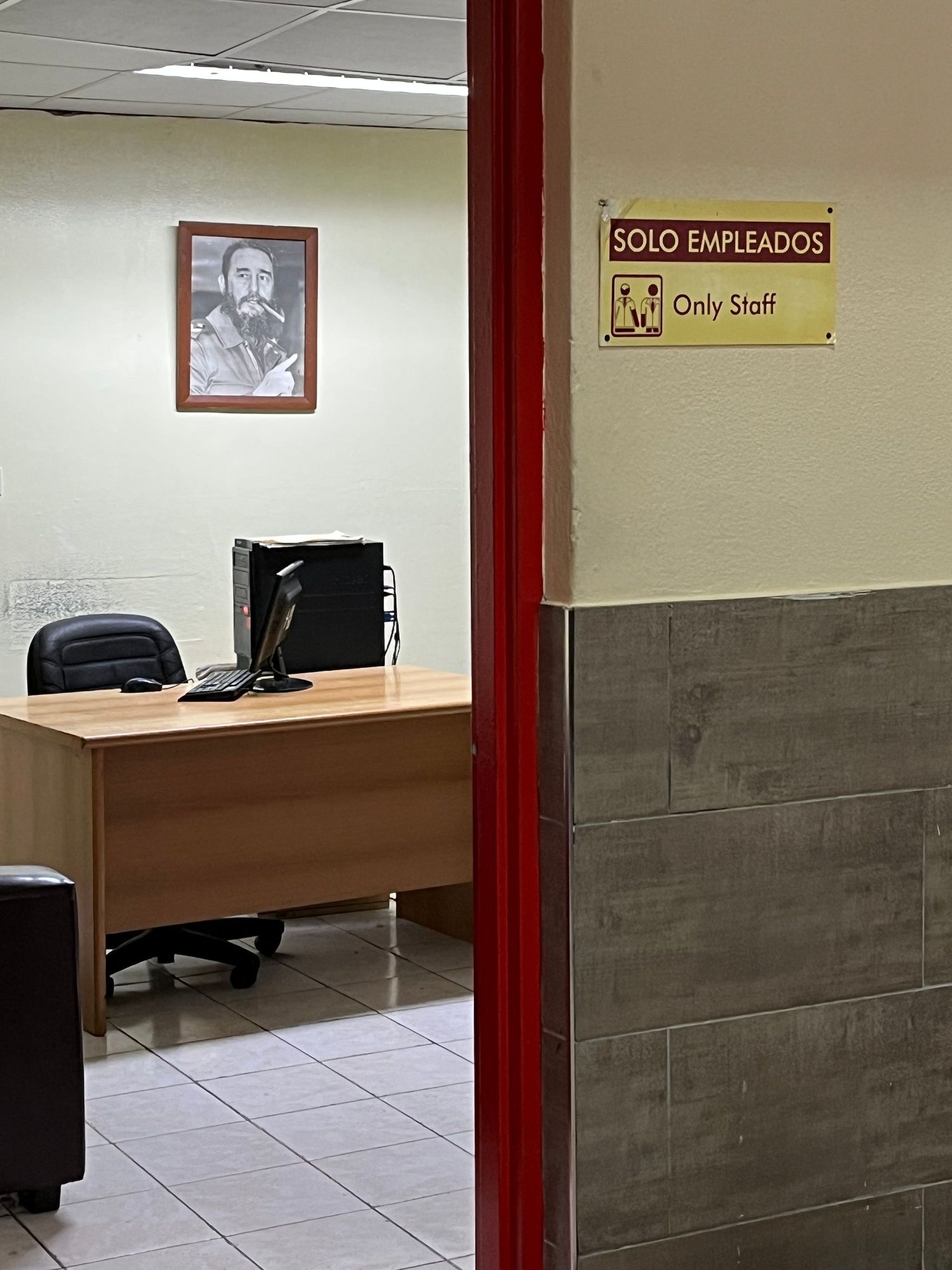 El Commandante behind the desk.