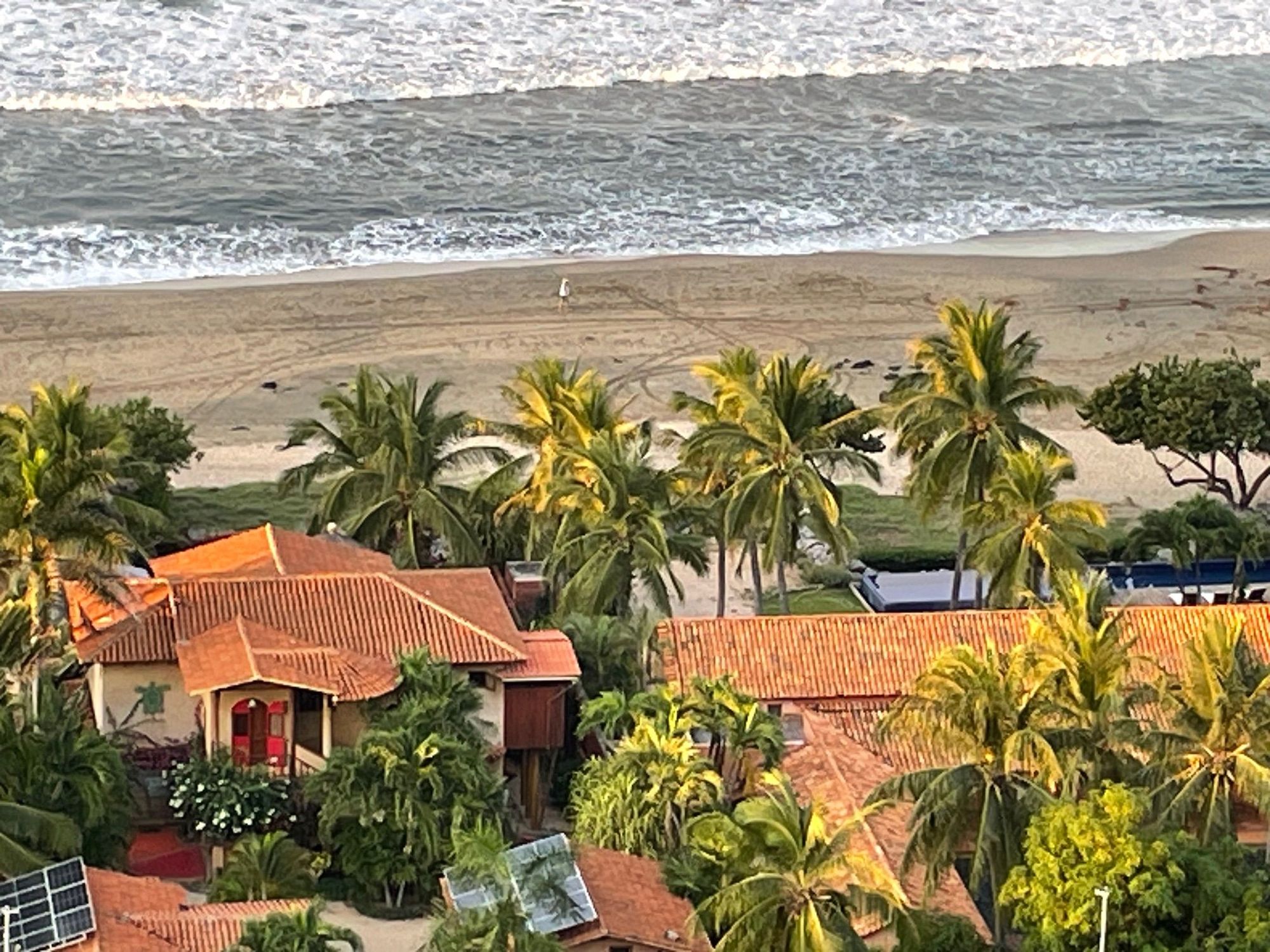 Looking straight down from the platform. You can see a little figure in white on the beach
