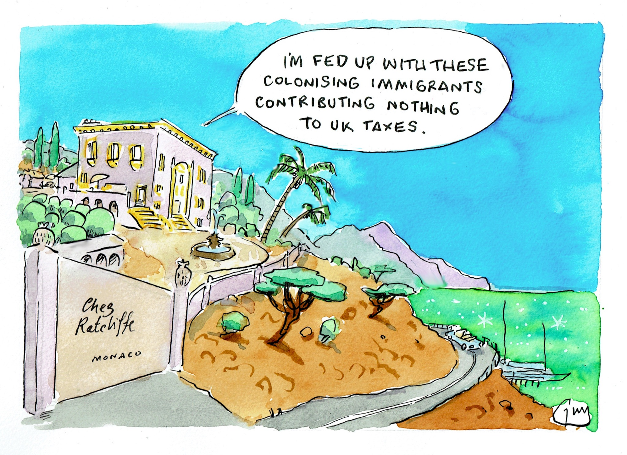 Basically an emigrant has complained that his old country is full of immigrants and his football team (which he part owns with foreigners) is staffed by immigrants.
