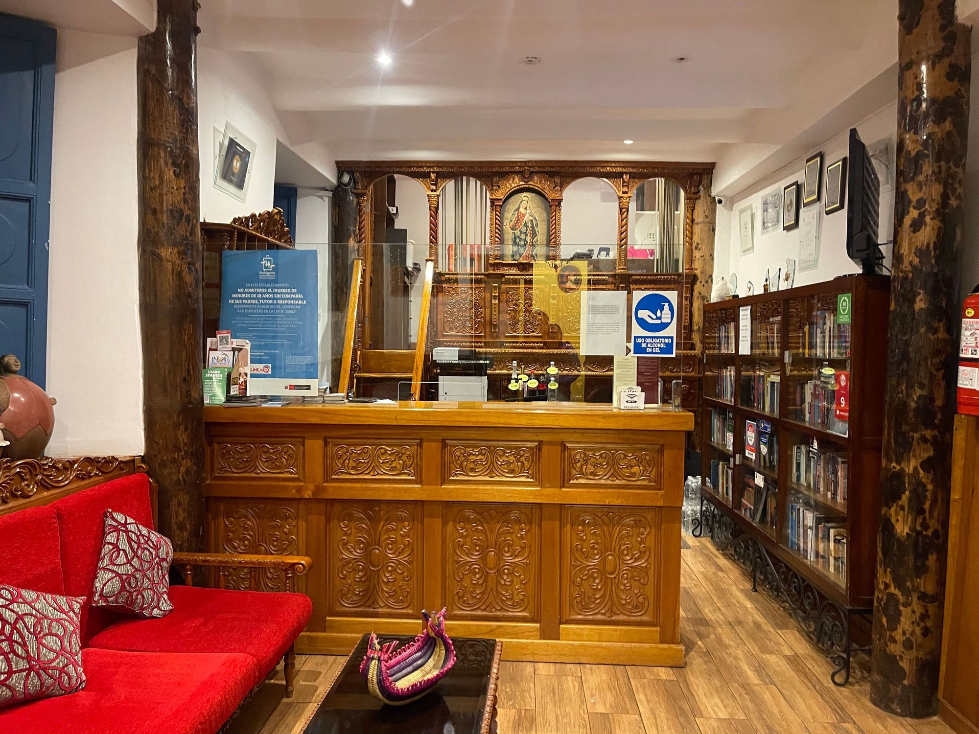 The reception desk is beautifully carved