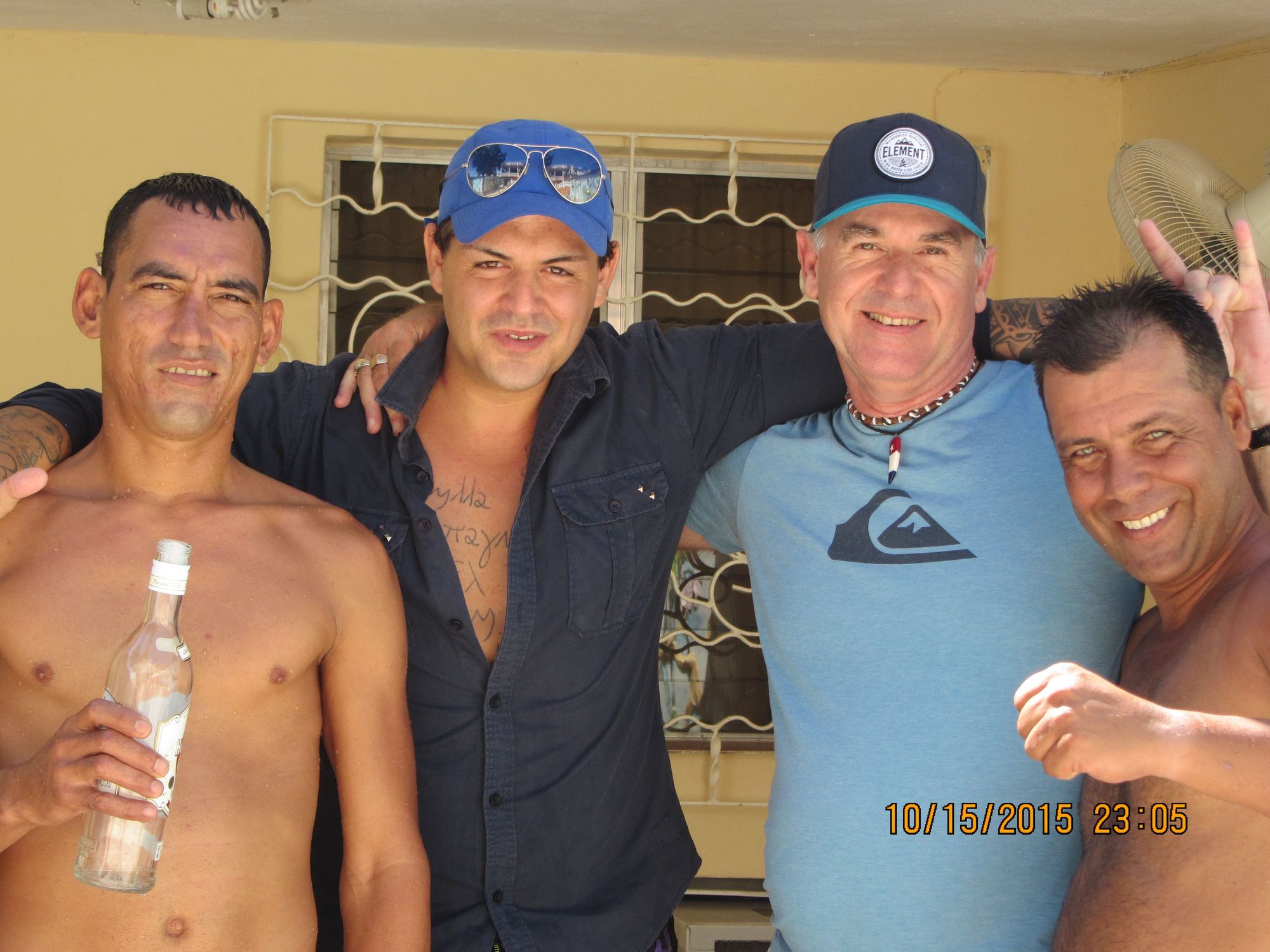 The four amigos at Renato's casa particular. Renato is the second from the left, with Maikel holding the bottle of rum on the far left. The ugly one who's second from the right is me. With my other friend, Daniel, on the far right wearing my bull horns. We were always up to no good together back in the day. Always good times!