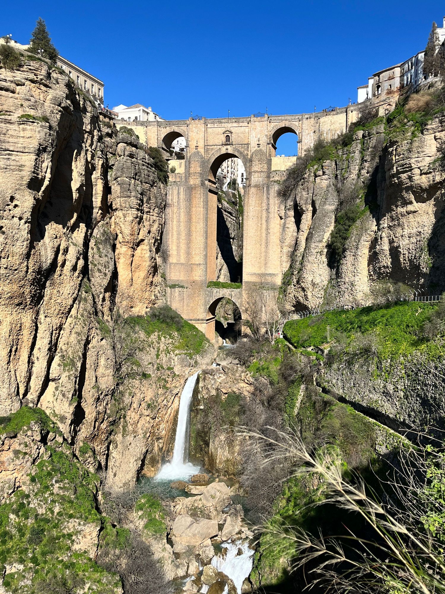 View from the start of Desfiladero de Tajo — you can see the walkway on the right side of the cliffs