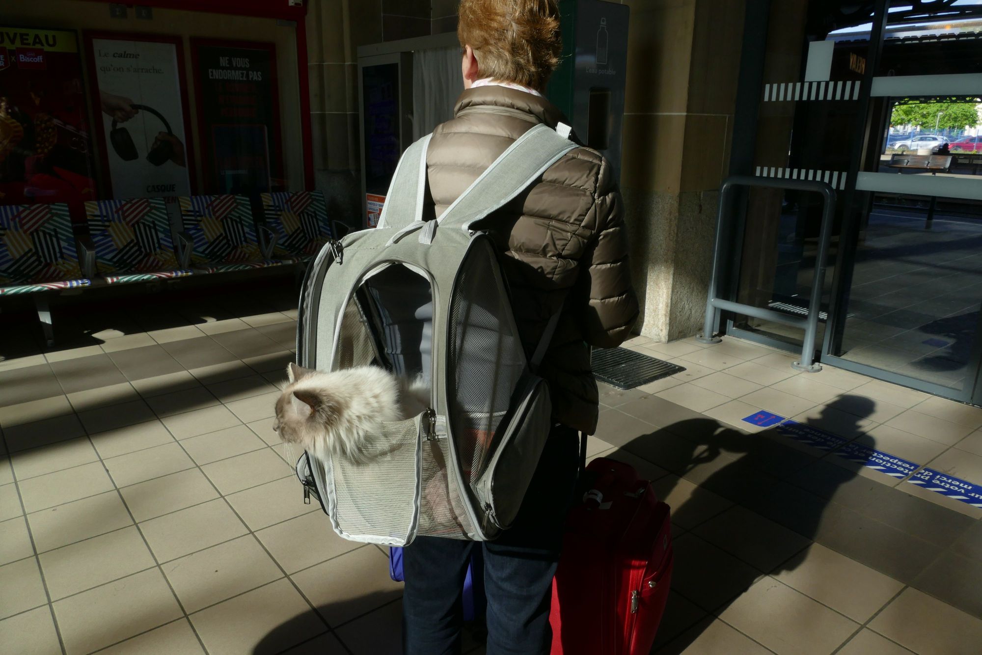 I slent a few minutes waiting at the train station, and thus woman and her travelling cat intrigued me!