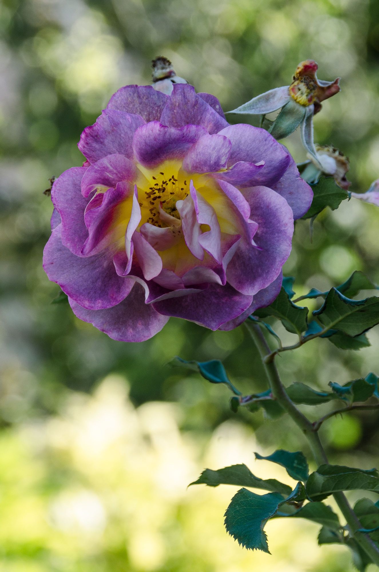 How we wish that our Nikons had adequately captured one particular private garden. The owner had landscaped her yard to form an attractive 'L' shape. There were tiered sections, a wide variety of trees and flowers plus a magnificent historic stone wall across which spread the long, thick branch belonging to ancient vine. The owner went for a walk while we were there and we came this close to congratulating her. The sole image we were satisfied with was this rare rose. Oh its fragrance!