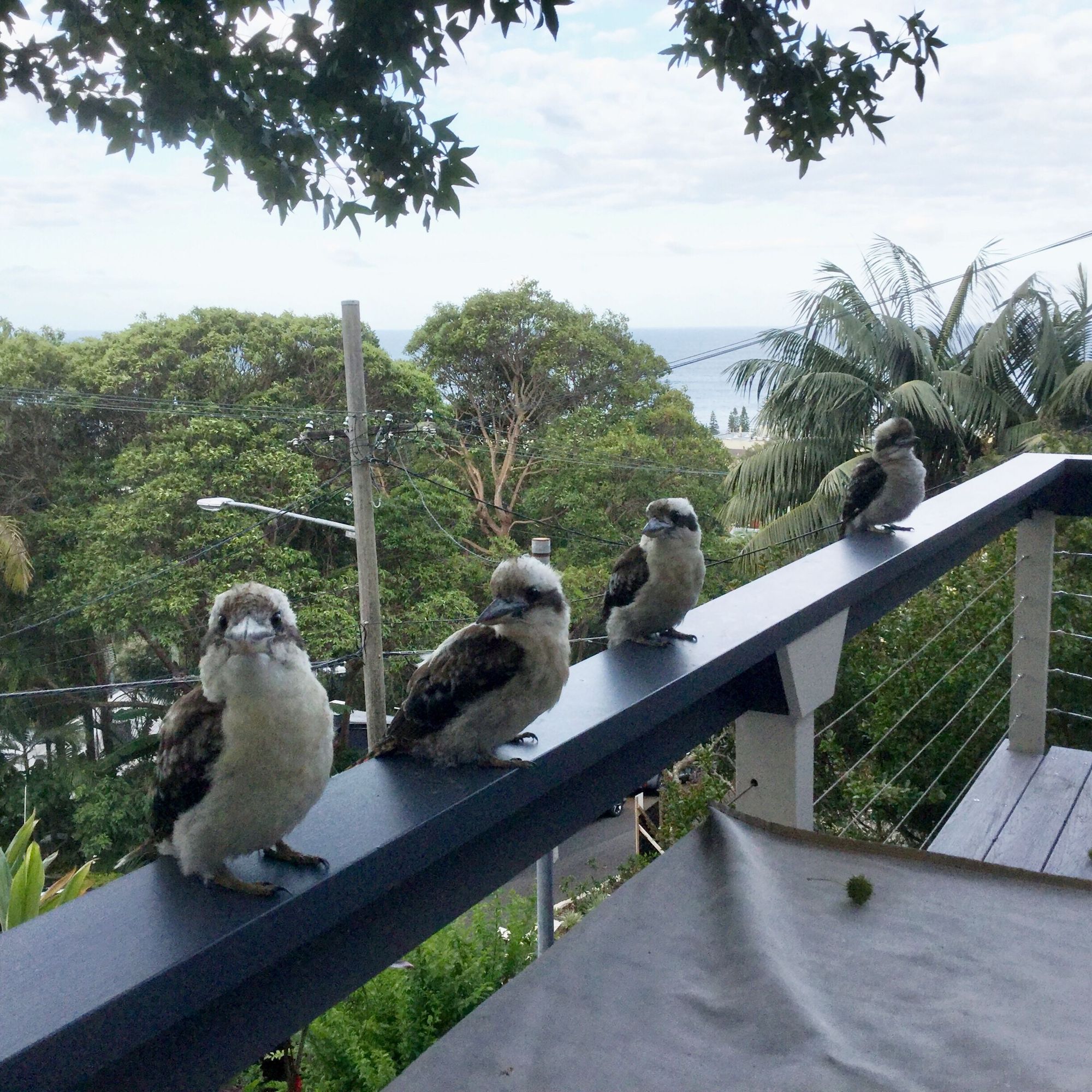 The family is home for dinner. My deck. About an hour ago. Very well mannered, my kookaburras -they all take their turn & eat from a teaspoon.