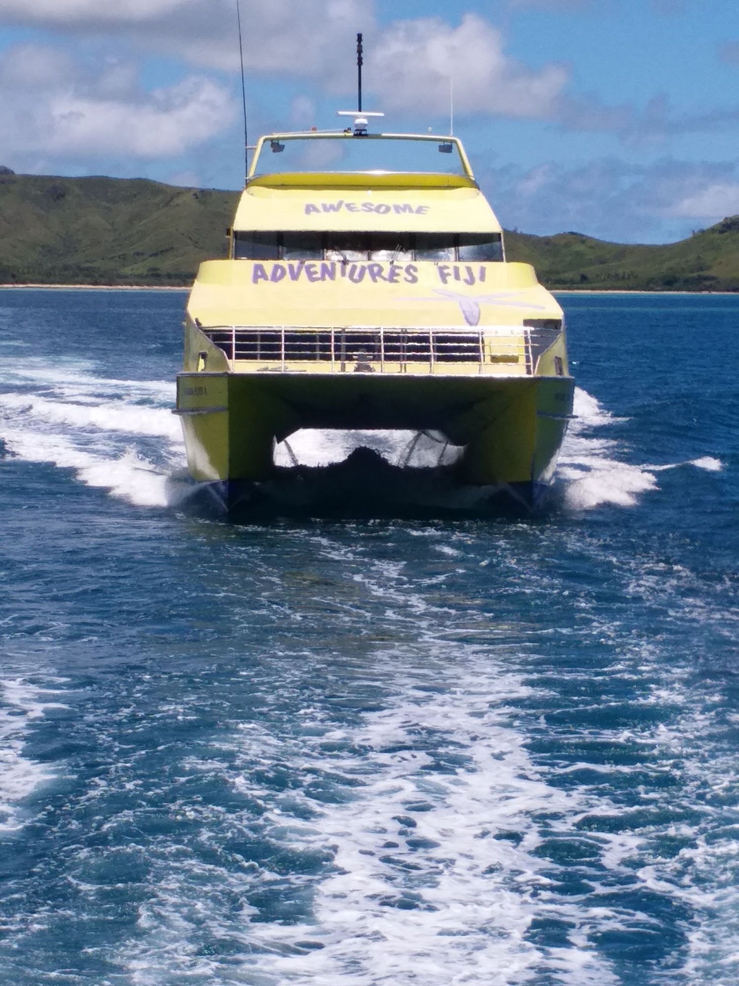This catamaran is Awesome Advertures Fiji which covers the Yasawas.Faster