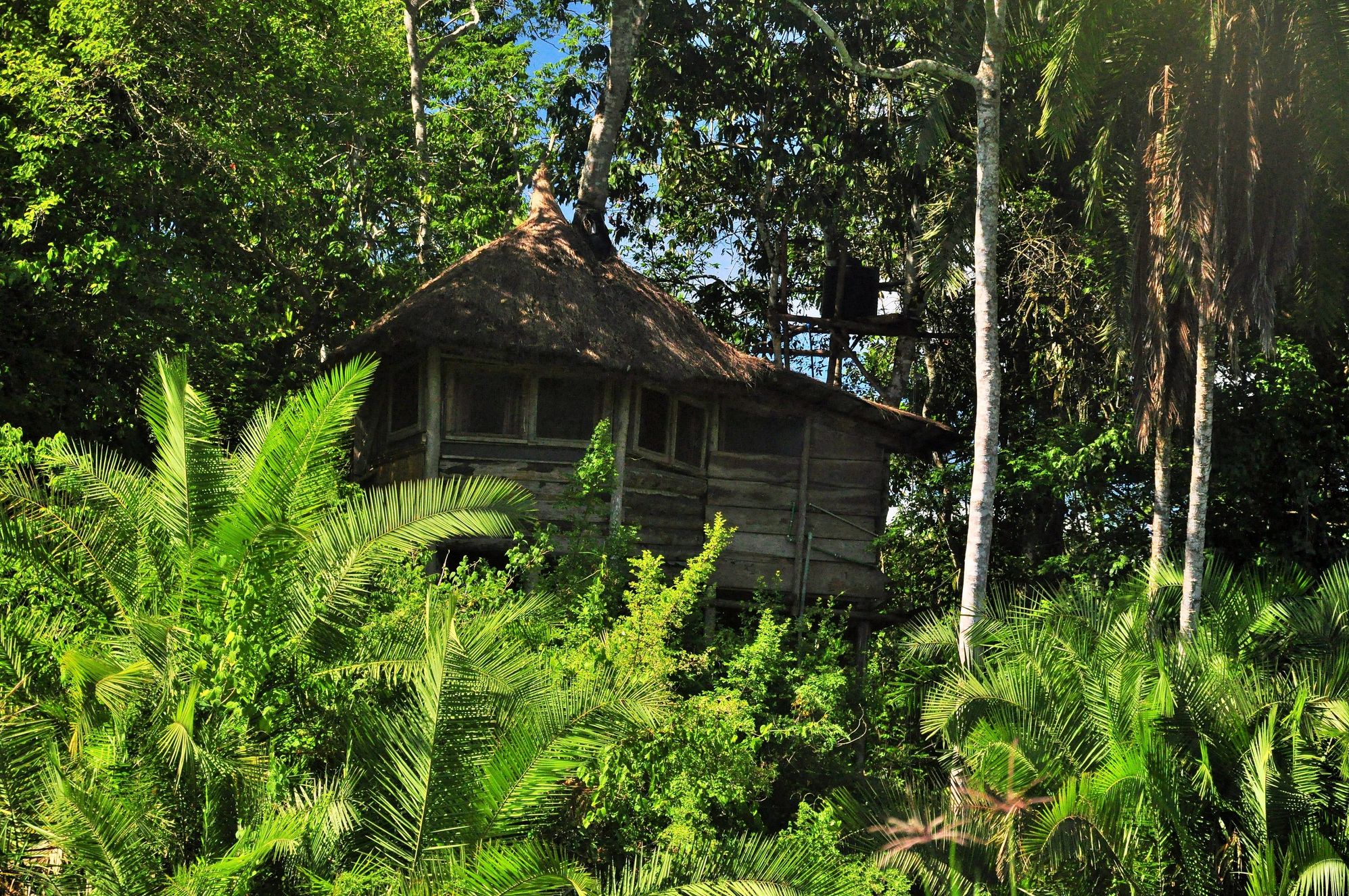The 'honeymoon suite' overlooking the baai. A forest clearing where chimps, forest elephants and hogs forage