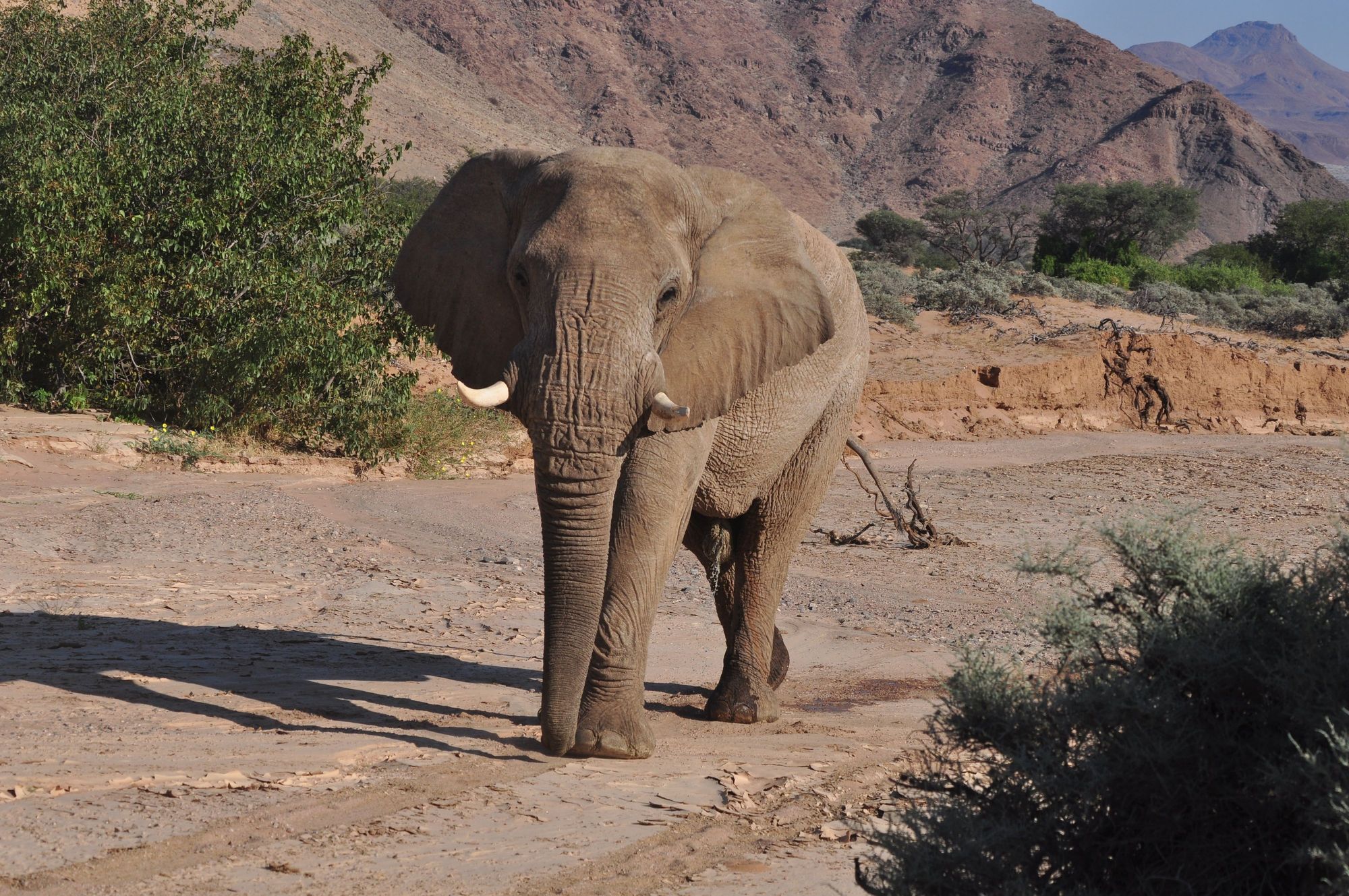 A male in Musth.They live in sandy desert, rocky mountains and arid gravel plains in Namibia's northwest.