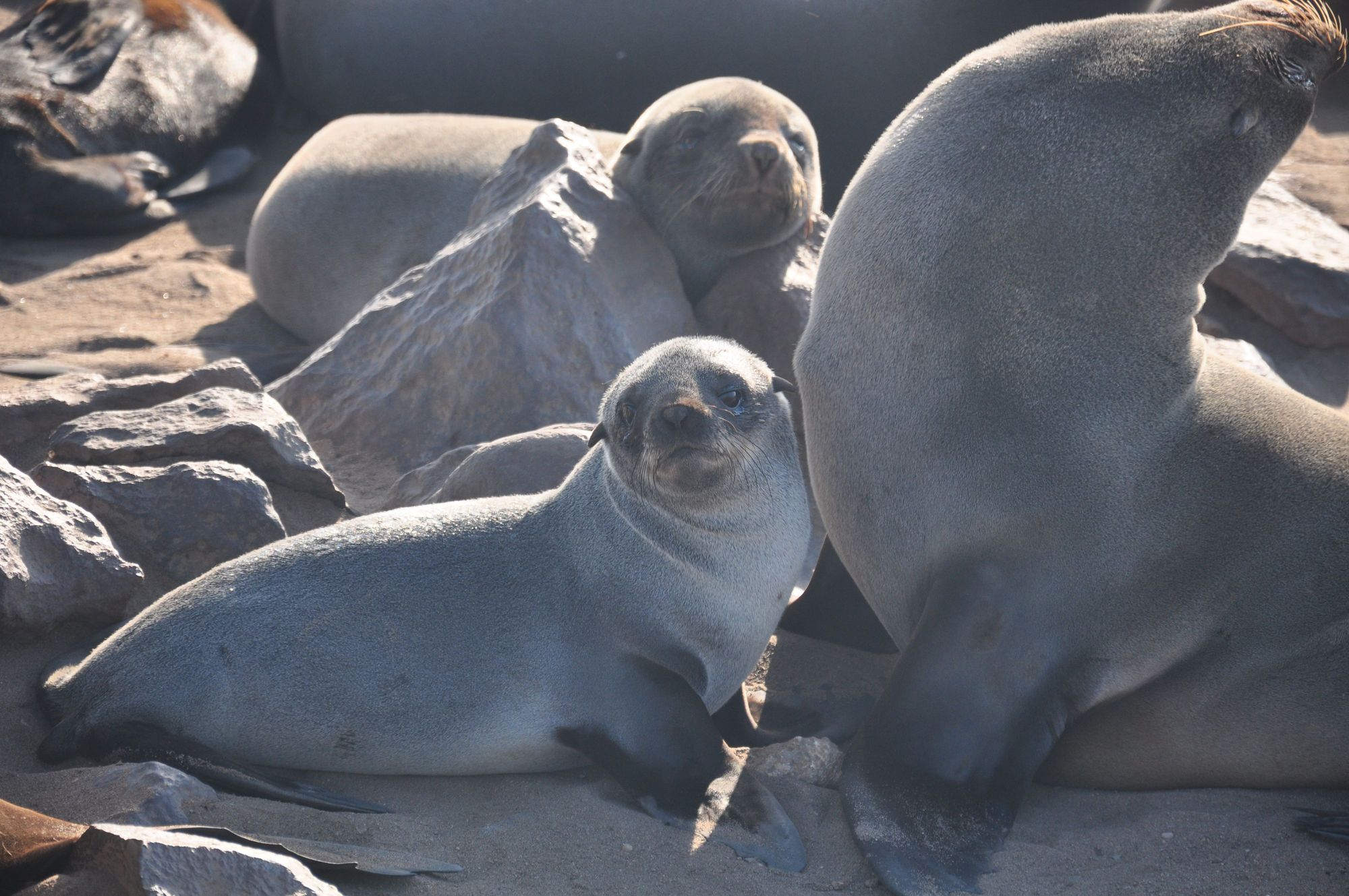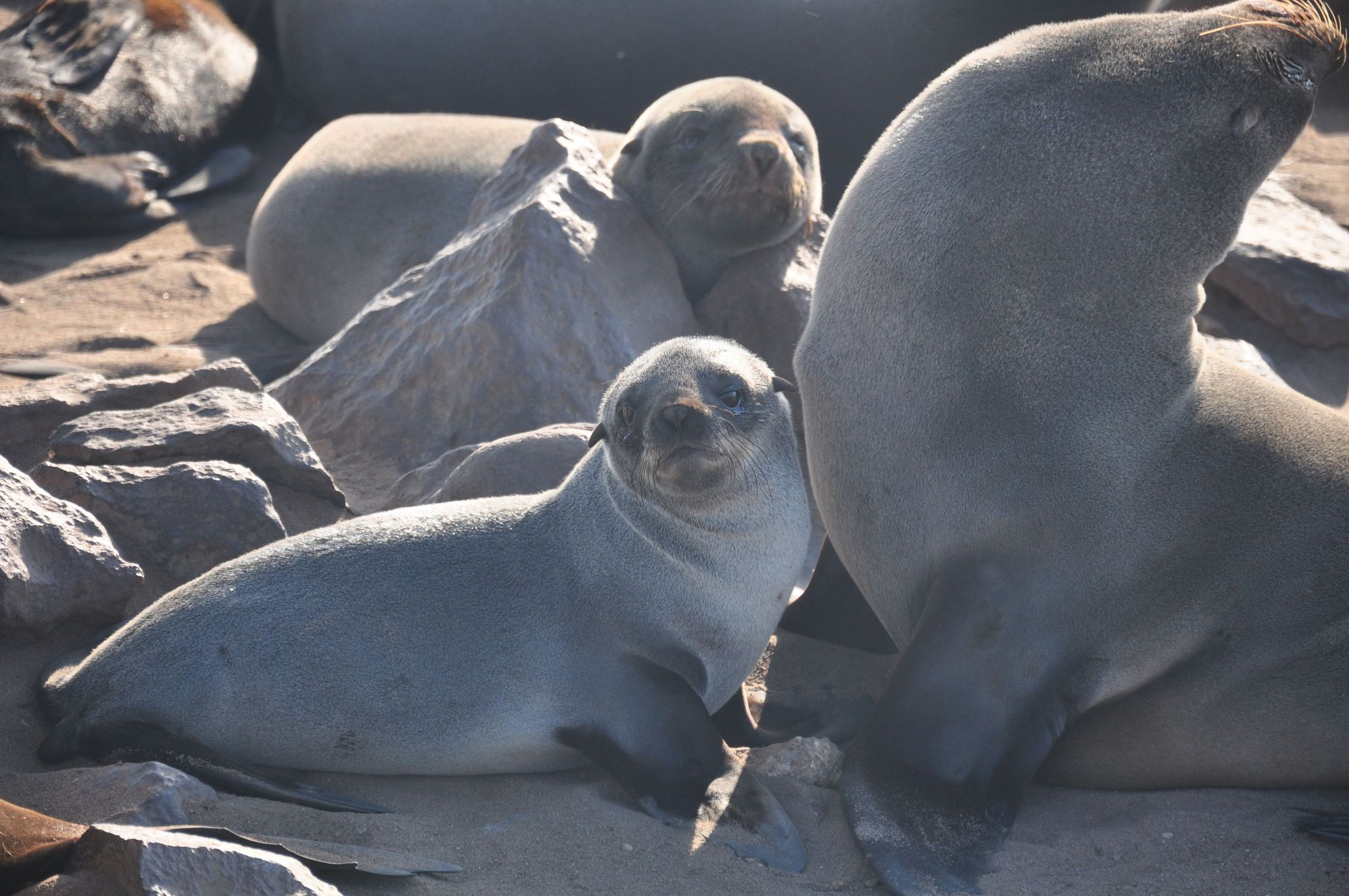 Tens of juveniles basking along with their mothers