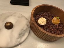 Also exquisite times ten. Chocolate souffle with caramel ice cream. Marvelous dinner for about 50 eurp.