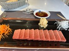 Carpaccio de carabinero....this was gorgeous to look at and just out-of-this-world to eat. There were two vinaigrettes....and dollops of trout roe....I dream of this, still.....
