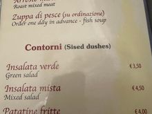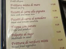 TRATTORIA SALANDA menu; note pricing, which is among the least pricey we've encountered at a restaurant on this trip