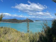 The boat ride to Apple Tree Bay passes by the prominent Split Apple Rock. According to Maori legend, it was sliced in half by two feuding gods.