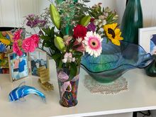 Art work from ripping paper and glue, no scissors allowed.