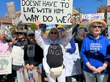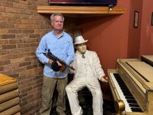 We brought lunch from a BBQ restaurant, but he wasn’t interested in eating anything. But he didn’t mind climbing onto Joyce’s lap anyway!