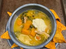 Shrimp, clams, mussels, scallops and monk fish in Thai Red Curry stew