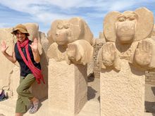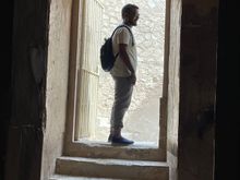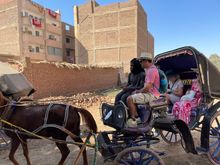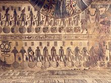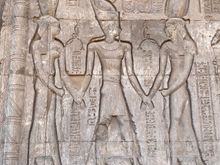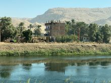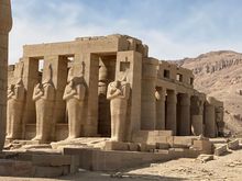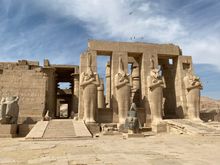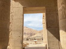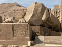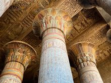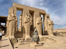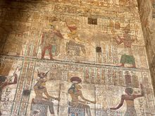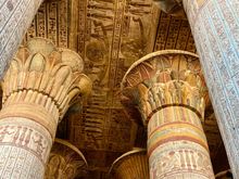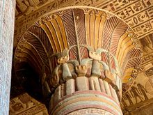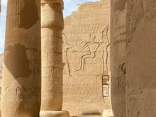 The temple sits in what appears to be a pit as the rest of the site is still buried beneath the town of Esna