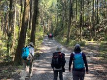Setting off through town at the beginning of our hike