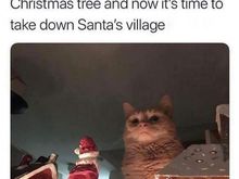 Someone is judging the Christmas decor. He’s climbed the tree twice so far.