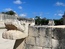 At the solstice, the light moves down the steps as the sun rises and it's supposed to look like a snake slithering down the pyramid ending in these two heads