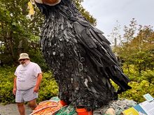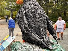 These statues are all made from plastics found in the ocean. The aquarium has a large emphasis on the effects of garbage in the sea.
