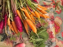Today’s carrot thinnings. We ( my wife really) grows much better carrots here than back in MA.