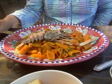 This was the best shrimp I have ever eaten in my life, perfectly grilled and served with a salsa verde, grilled lemon, wonderful coleslaw. Also in the upper right is rockfish ceviche. My wife had a perfectly cooked grilled swordfish sandwich. Great meal at Mitch’s. Also, though it’s a shack type of place there are real dishes and silverware, which really enhances food. If parking were not such a PIA I’d eat there repeatedly.