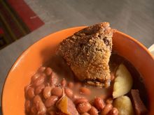 Duck breast with Christmas Limas and greens