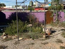 Here is our bell in the headboard we bought at a yard sale a couple of years ago in hopes of using it in the garden., with the handy guy who saw it and thought it would be much better and more interesting than the rebar we were thinking about. We love it and it fits into sensibility of our garden. He cut away some of the design to make the space for the bell, which is made by an artisan on the Santa Fe-Taos road out of old propane tanks. We’ll grow some vines on the posts. Maybe scarlet runner