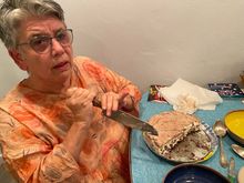 My wife and her ice cream birthday cake,