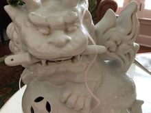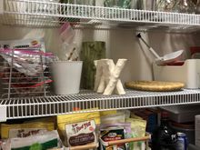 One of the large bunnies that is actually a cookie jar, with a decoupage gingham rabbit.