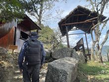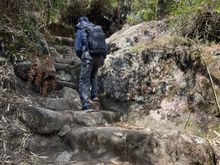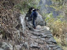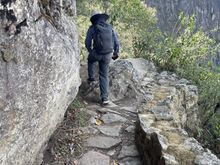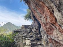 Inka Bridge carved on a sheer cliff wall