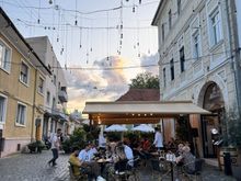 Lovely breakfast area at our hotel in Sighisoara, Casa Georgius Krauss