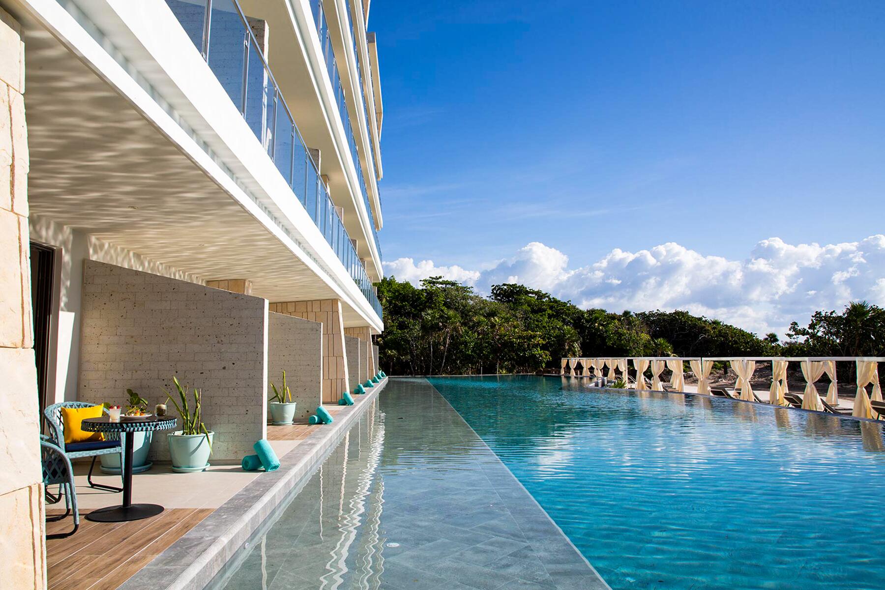 I just returned from a trip to Palmaia in Mexico’s Riviera Maya, the capital of cheesy all-inclusives. But Palamia is different: It’s a brand-new resort with a truly unique concept that’s a mashup between a luxury all-inclusive hotel and a boutique wellness resort. There’s yoga, meditation, an in-house astrologer, sunset ceremonies on the beach, and a shaman that leads groups through a cleansing ritual in the temazcal. At night there’s cocktails and dancing to DJ sets so you can retox before the next day’s detox. It’s kind of like a giant bacchanalian festival at a chic rehab in the jungle. I can’t wait to go back.