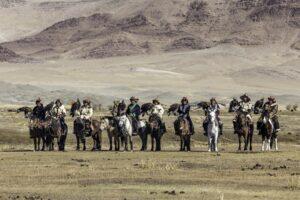 Dressed in hand-made fur clothing, Kazakh hunters practice an exceptional form of falconry, training golden eagles to hunt for small prey such as foxes, marmots, and rabbits.