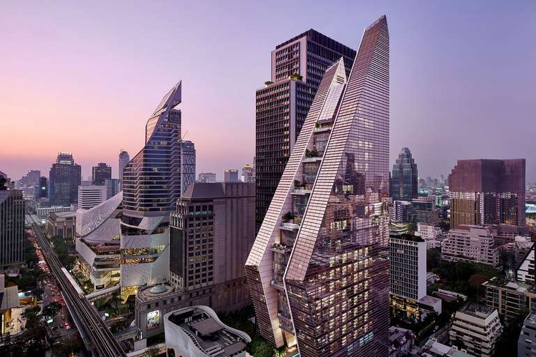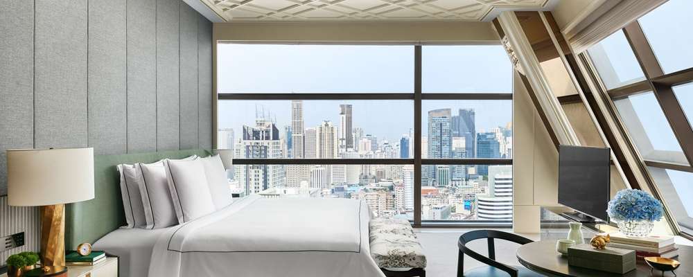 This architectural marvel, opened in 2019 with 158 rooms, and it owns a distinct profile in the city. The near-skyscraper boasts a slanted facade of mirrored glass. Inside the suites, the unique design’s cantilevered windows give maximized, floor-to-ceiling vistas of Bangkok’s sleek Phloen Chit buildings and the BTS Skytrain zooming far below. Luxuriate in the soaking tub, sink into the living room sofa or sip from the petite jug of Thai iced tea awaiting you at check-in––those views relentlessly and silently command your attention at every turn.