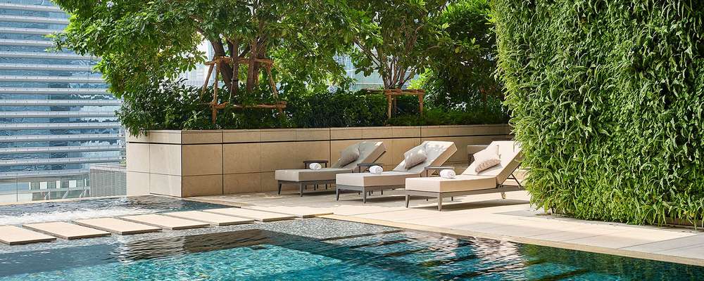 Western guests might be shocked to find many of Bangkok’s hotel pool designs are purposefully in the shade. Cultural preferences and fair skin in Asian countries means sun-tanning isn’t as high a priority, or, by many guests, may be eschewed altogether. The Rosewood Bangkok’s swimming pool is a linear slice of water between the building’s two sides, almost entirely shaded. A few loungers at the very end do get some sun, at certain times of the day. Rosewood’s loftiest suites include personal pools, from the two-bedroom ‘Sky Pool’ suite to the duo of 2,000 square-foot-plus ‘House’ suites.