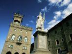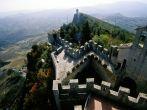 Capping a limstone peak on Mount Titano, the 11th Century Guaita is one of the Three Towers in San Marino, the world's oldest republic, founded by a stonecutter in 301. San Marino, Italy Capping a limstone peak on Mount Titano, the 11th Century Guaita is one of the Three Towers in San Marino, the world's oldest republic, founded by a stonecutter in 301. San Marino, Italy
