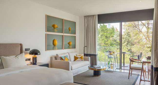 Unveiled in October 2024 by boutique brand Hamak Hotels, this 32-key sanctuary is housed in a lovingly restored 1920s rose-hued Belle Époque mansion that has lived many lives, including a neighborhood convenience store and residential apartments. With original floors underfoot and Mexican art adorning the walls, today it wears its most elegant guise yet. Its protected century-old façade still stuns with Porfirian and art deco flourishes, echoing the grandeur of Roma Norte’s architectural heyday.