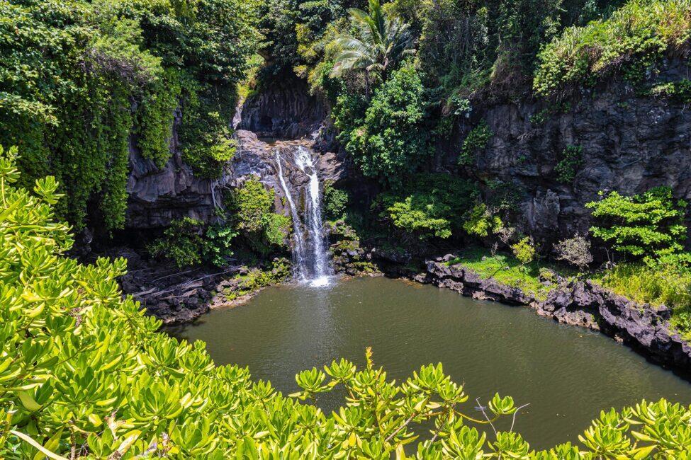 Today’s the day to tackle the 600 curves of the Road to Hana (Highway 36/360). There aren’t a lot of dining options in Hana, but many hotels offer picnic baskets for the road, or fill your cooler and gas tank in Paia, the last chance for provisions. Pause to stretch your legs at the Keanae Arboretum, picturesque Keanae Landing, or any of the roadside waterfalls. Approaching Hana town, turn into Waianapanapa State Park, with its rugged lava outcroppings, black-sand beach, trails, and caves with freshwater pools. There isn’t much reason to stop in Hana town, except for lunch at the food trucks if you didn’t bring your own, so continue on to the Kipahulu District of Haleakala National Park, site of the Pools of Oheo (nicknamed Seven Sacred Pools) and 400-foot Waimoku Falls. (Check for updates on closures due to flash flooding and landslides.) Don’t leave Kipahulu without visiting the grave site of famed aviator Charles Lindbergh, who is buried at 19th-century Palapala Hoomau Church.