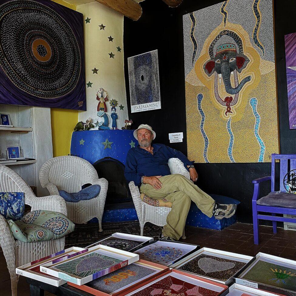 “How many business cards do you have?” I asked James Jereb, whose penetrating eyes sparkled above his gray mustache and beard and underneath a beige bucket hat. He was dressed simply in a billowing, blue shirt and khaki trousers. “Well,” he replied, “I do a lot of things. You could say I’m artist, cosmic architect, stone mover, ant whisperer, magician, sorcerer, and sacred geometrist.”