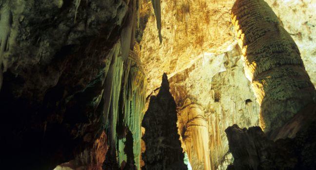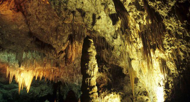 Subterranean columns in spring-fed pool, Carlsbad Caverns National Park, New Mexico. Subterranean columns in spring-fed pool, Carlsbad Caverns National Park, New Mexico.