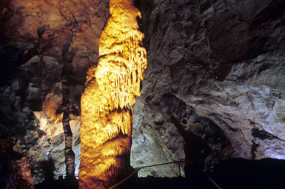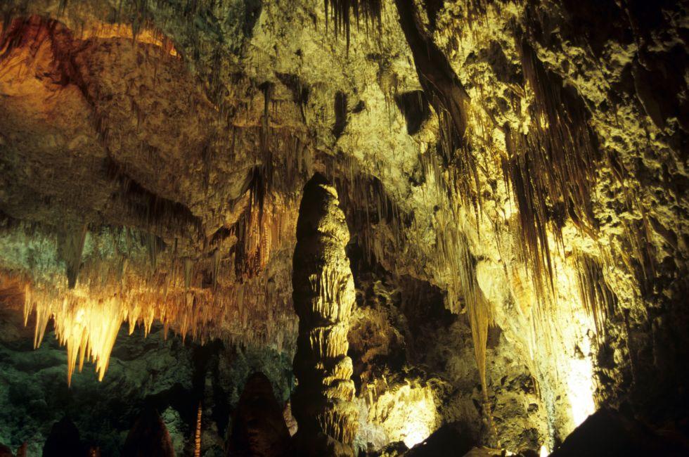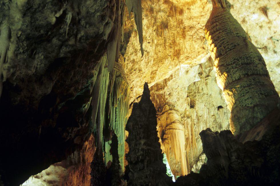 Subterranean columns in spring-fed pool, Carlsbad Caverns National Park, New Mexico.